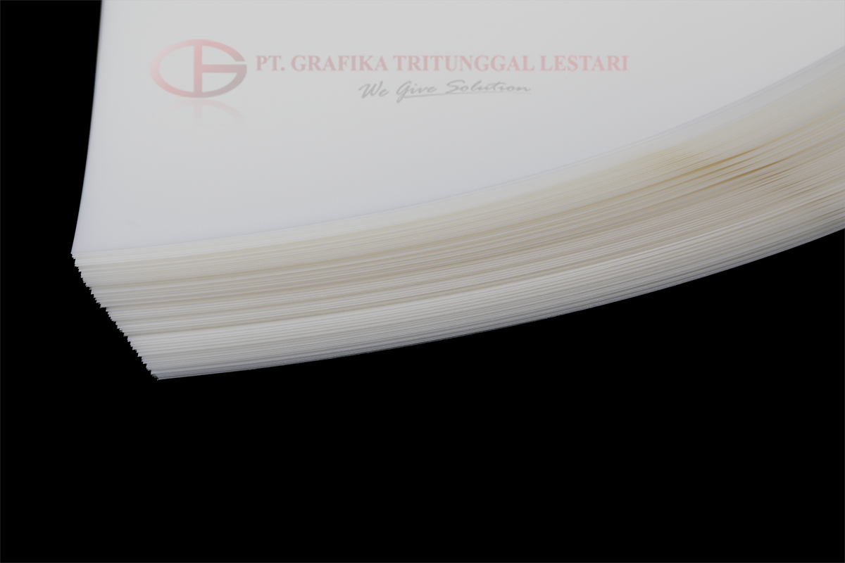 Merupakan Film yang dicoating pada kedua sisi sehingga kedua sisinya dapat diprint sebagai media transmisi dalam mencetak ke tahap selanjutnya. - Single Side Matte